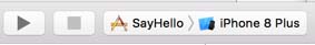 When you press the run button (triangle in top left of interface), the Simulator is launched to show you what your app looks like and how it works. Change Simulator to the type of phone you want to make your app using the main toolbar. Then choose the Run button. You will see the Simulator and then the app launches. It’s just a blank screen now. It may take a few seconds for the build to display.